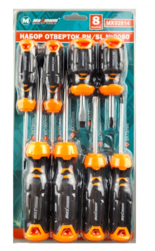 Комплект отверток PH/SL от «Maximum» N 1080 изготовлен из хром-ванадия и содержит 8 отвёрток разного размера со шлицами PH и SL.
