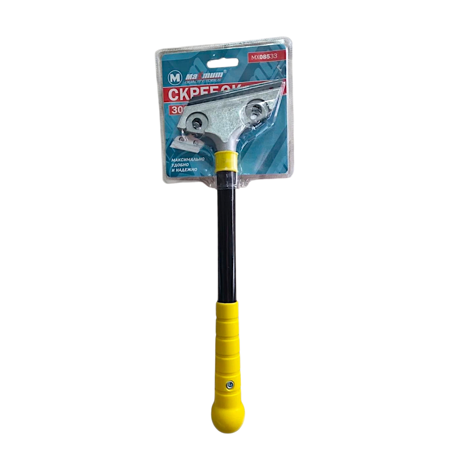 Малярный скребок 30 см имеет удобную пластиковую перфорированную рукоятку со стальным набалдашником для совместной работы с ударным инструментом.