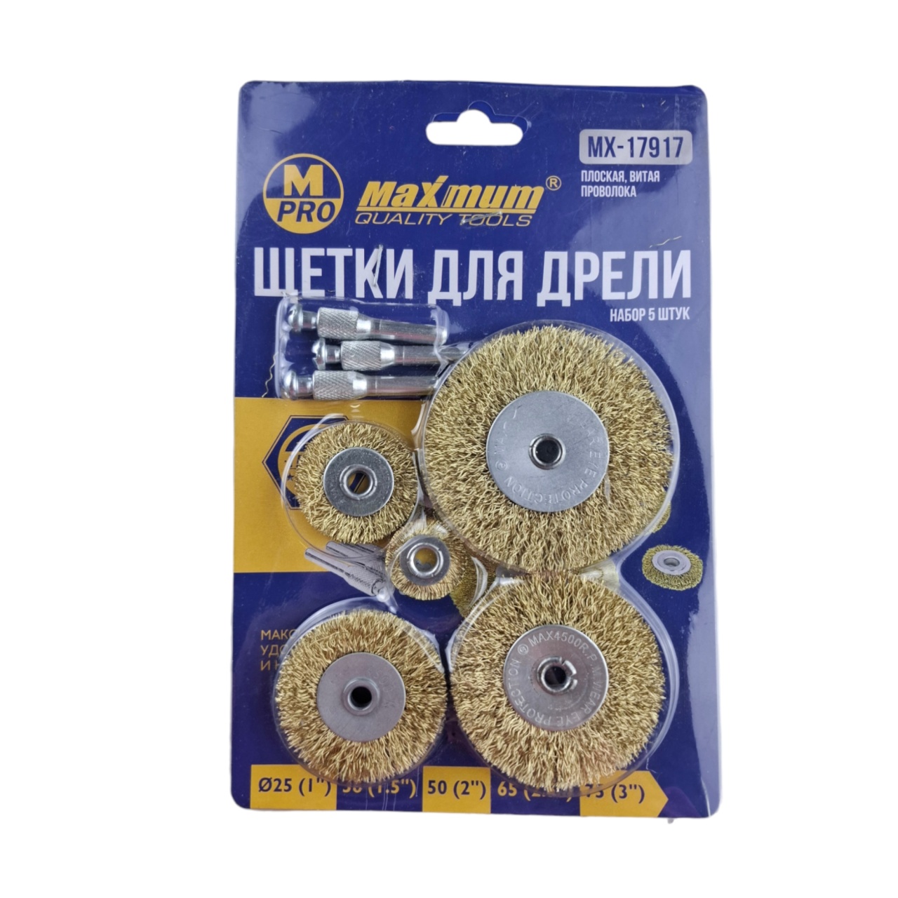 Набор щеток с волнистой проволокой 5шт, 25/38/ 50/ 65/ 75мм, латунированные, "MAXIMUM"MX46030(03163)